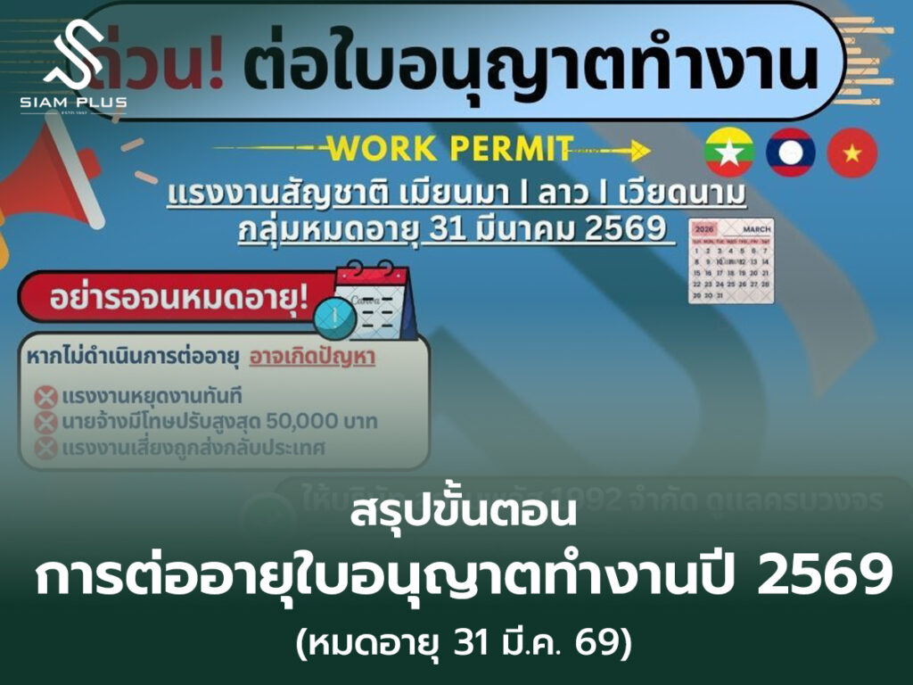 สรุปขั้นตอนการต่ออายุใบอนุญาตทำงานปี 2569 (หมดอายุ 31 มี.ค. 69)